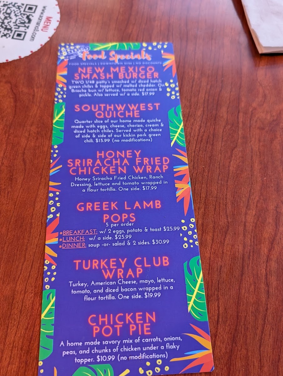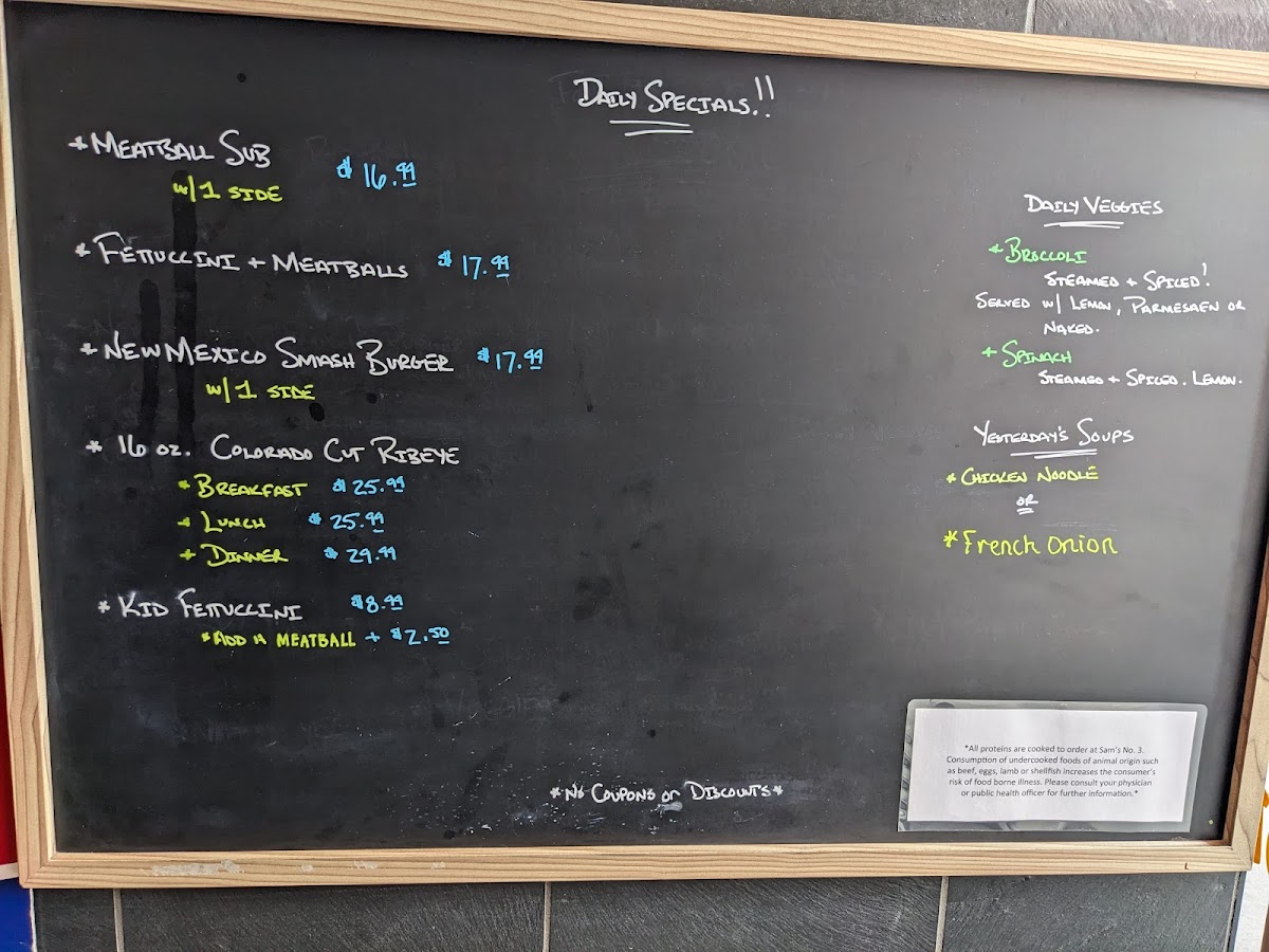 Introducing the Menu at Sam's No. 3