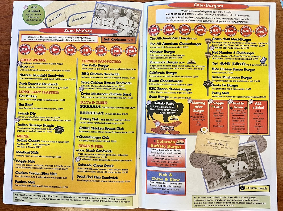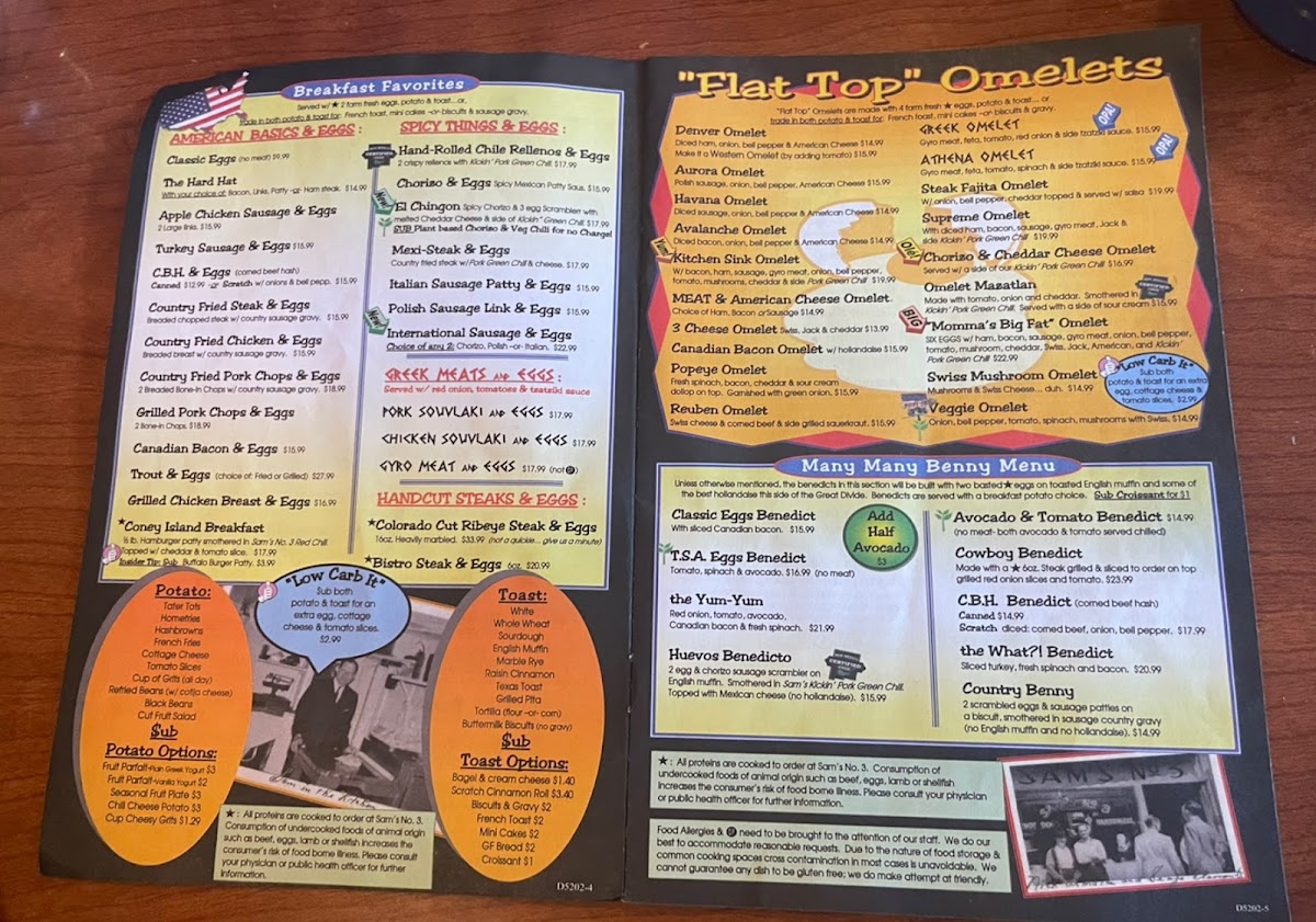 Sam's No. 3, a vibrant American diner nestled in Denver, invites you to experience a classic breakfast feast with a hearty twist. Their menu shines brightest with pancake options ranging from a single fluffy pancake to the “Stack No.3,” a generous triple stack that promises a satisfying start to your day. For those craving savory, the diner delivers robust American diner salads like the Cobb Salad layered with turkey, ham, cheeses, and fresh avocado, or the BBQ Ranch Salad topped with crispy fried chicken and smoky onion rings—both crafted for bold flavors and ample portions.